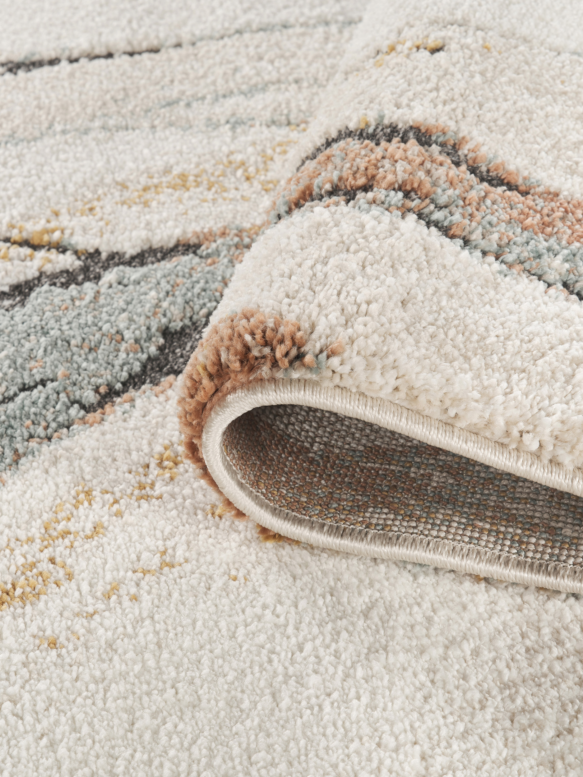The Essence Aura Rust rug introduces organic structure and dynamic texture to modern interiors. Its 20 mm pile adds visual depth, crafted from a durable blend of polypropylene and polyester for resilience and longevity. The surface features a flowing abstract pattern with curved and jagged contours, resembling natural formations such as bark, sediment layers, or water erosion. This terrain-like composition creates rhythm and movement, making it a striking focal point in contemporary spaces. Backed with natural jute for structural integrity.